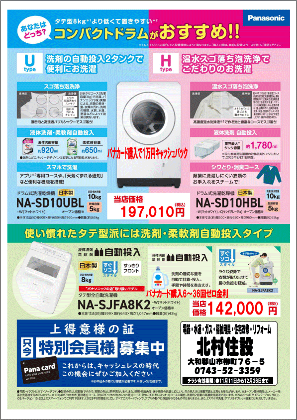 オール電化・太陽光発電・プロパンガスの事なら奈良県大和郡山市のパナソニックの電気屋さんの北村住設にお任せください。